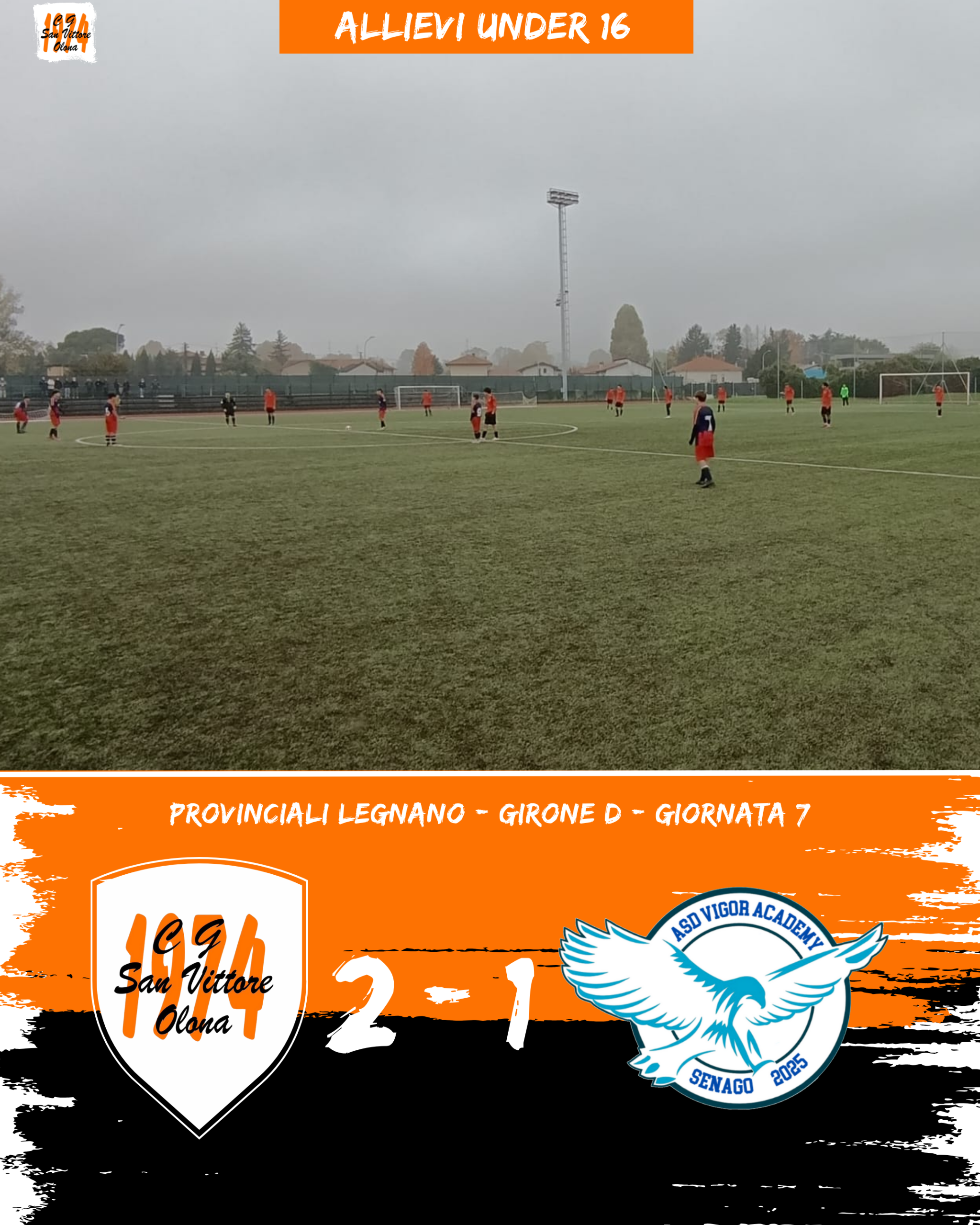 Dopo la sconfitta di misura (2-1, rete di Tommaso Morrone) della domenica precedente sul difficile campo della Virtus Cantalupo, i nostri Allievi Under 16 tornano alla vittoria, superando la Vigor Academy Senago con lo stesso punteggio di 2-1.